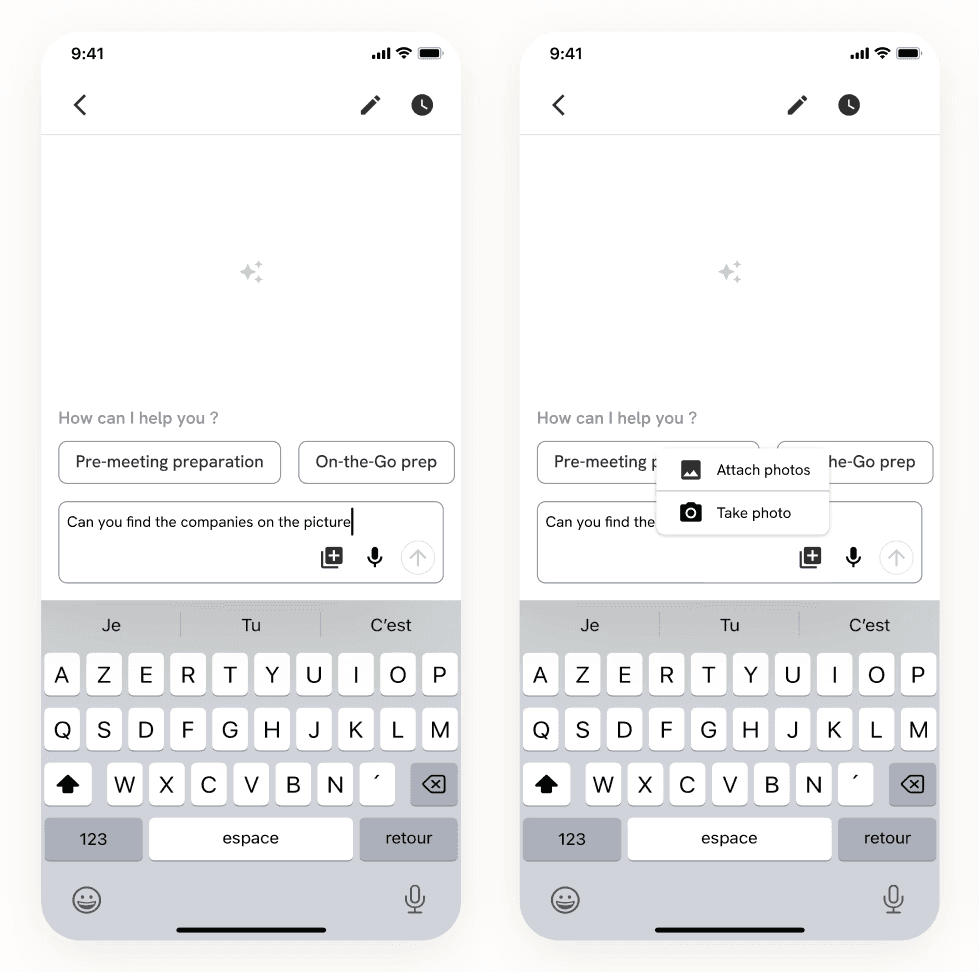 Proposer le chat vocal, l'ajout de photos, la recherche IA écrite classique et l'ajout de notes.