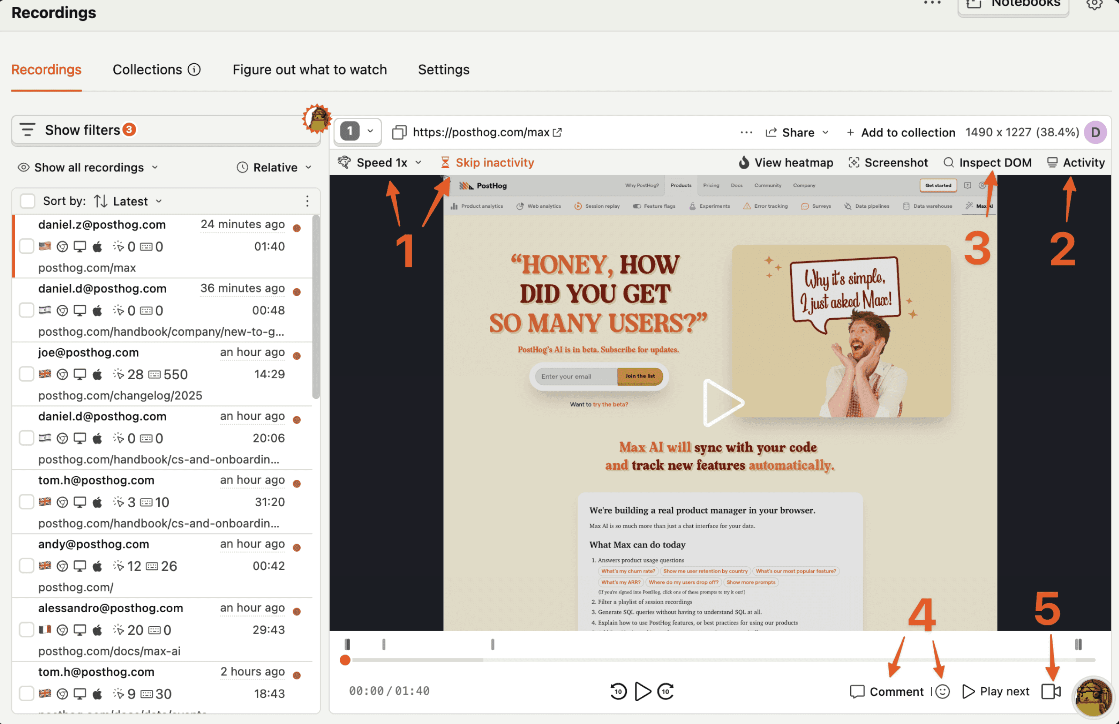 Regarder toutes les semaines les sessions replay sur PostHog pour observer les comportements utilisateurs.