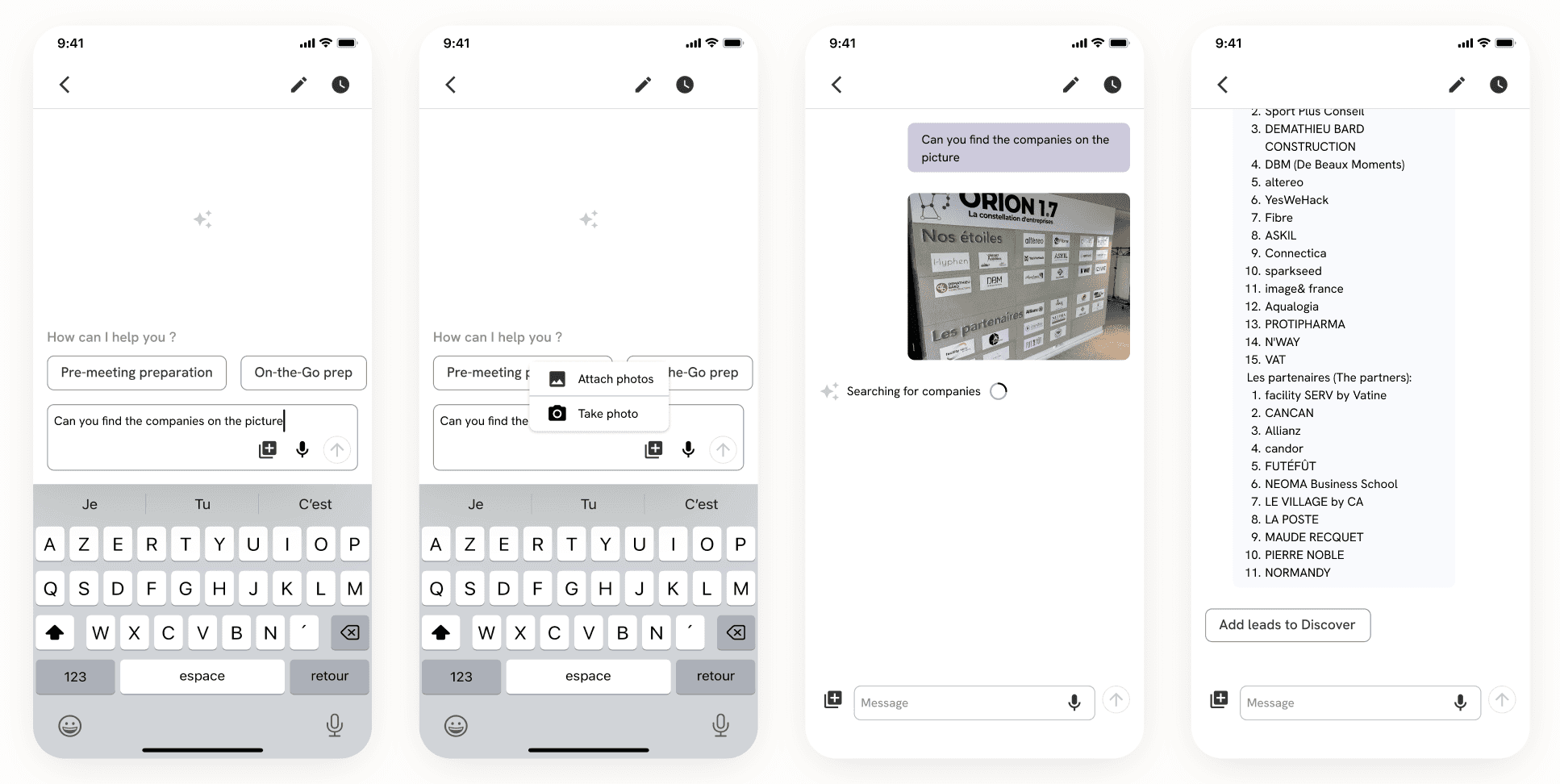 Dans la continuité du projet mobile, j’ai travaillé sur les premières explorations d’un assistant IA conversationnel intégré au Lead Profile.
